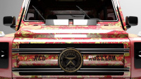 Keine Frage, wer sich diese Liebesgrüße aus Moskau durch den Kopf gehen lässt, steht zweifelsohne auf der falschen Seite des Baseballschlägers. Halt, vielleicht irren wir uns aber auch. Womöglich erlaubt sich Dartz mit der Russian Editon auf Basis des Mercedes G63 AMG 6x6 nur einen derben Spaß für Leute, die auf Konventionen pfeifen und Freude an der Provokation haben. Darauf deutet jedenfalls ein Airbrush-Kunstwerk hin, welches Mütterchen Russland als Chaos-Land mit einem vergessenen Lenin und einem leicht unterbelichtet wirkenden aber offenbar schießwütigen Präsidenten Wladimir Putin darstellt bzw. diffamiert. Und mittendrin im Chaos von Gewalt, Zerfall und Zerstörung die Russian Edition vom Mercedes G63 AMG.