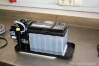 In unserem Beispiel ist die Hydraulikeinheit so aufgebaut, dass sie zudem die Batterie aufnehmen kann. Dazu muss die originale Batteriehalterung des Porsche 997 jedoch ausgebaut werden.
