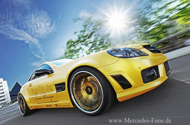 Wie macht man einen Mercedes SL 55 AMG noch sehenswerter? Bei der auf Fahrzeugfolierungen spezialisierten Firma fostla in Hannover hat man beim Veredeln des Supersportwagens auf Gold gesetzt. Ein Voll-Folierung in Yellow Matt Metallic verleiht dem Mercedes-Benz Roadster aus Affalterbach den hochkarätigen Glanz und den unwiderstehlichen Hingucker-Look.