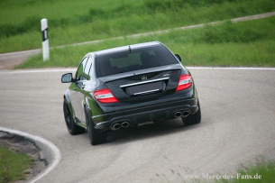 Dadurch schafft der C63 AMG die 0-100 km/h Beschleunigung in nur noch 4,3 Sekunden, die Aufhebung der Geschwindigkeitsbegrenzung lässt nun eine Vmax von bis zu 320 km/h zu.