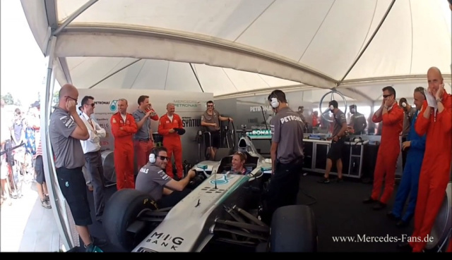 Mercedes wie er klingt und kracht: Als die Mannschaft der Mercedes-F1-Boliden-Manufakturen in Brackley und Brixworth der Kunstflugstaffel der Royal Airforce "Red Arrows" neulich einen Besuch abstattete, gab's zur Begrüßung der Kunstflieger ein Ständchen. Aber nicht die Mercedes-Crew erwies sich als stimmgewaltig. Nein, ein Mercedes F1-Bolide summte ein passendes Liedchen - nämlich den Soundtrack des bekannten Flieger-Epos "Top Gun" aus dem Jahr 1986. Hören Sie mal rein. Sie werden überrascht sein, wie gut der Mercedes-Silberfpeil die Töne trifft.