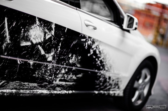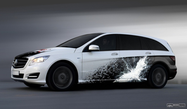 Die Mercedes R-Klasse mit der ungewöhnlichen Folierung wurde bei dem russischen Autoveredler RES Styling vorgenommen.