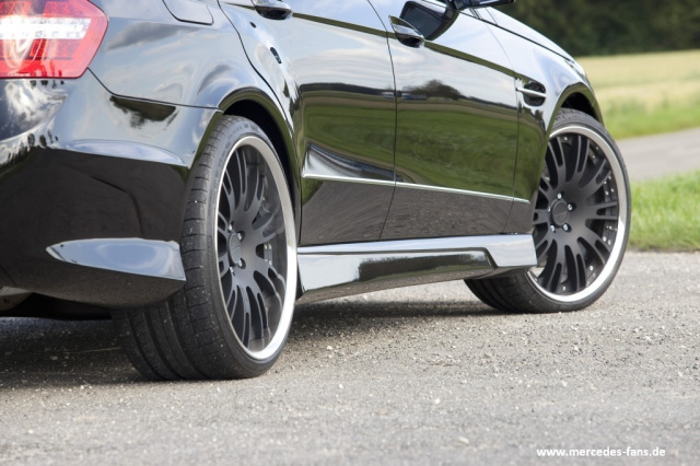 An Leistung hat es der Mercedes E-Klasse schon serienmäßig nicht wirklich gemangelt, dennoch bietet der Mercedes Tuner auch in diesem Bereich diverse Lösungen. So z.B. eine Leistungssteigerung beim E 500 auf 316 kW (430 PS) und 550 Nm Drehmoment mit Vmax- Aufhebung . Eine D-Box ist für alle Diesel-Modelle lieferbar, die Mehrleistung wird mit ca. 20% angegeben. Dazu gibt es noch ein GPM-Powermodul, das für ein besseres Ansprechverhalten des Gaspedals und spürbarer Leistungsverbesserung zuständig ist. Lumma Design bietet dazu eine spezielle, aus Edelstahl gefertigte Sportauspuffanlage mit 4x90mm Endrohren an.