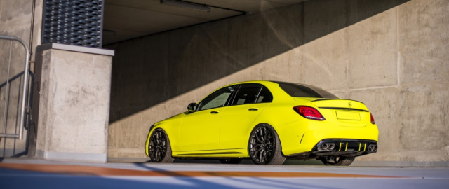Ferner zeichnen eine kraftvoll modellierte Frontschürze und die Heckschürze mit runden Doppelendrohrblenden den C43 als agilen Aktivisten des Asphalt aus. Und weil an der knallgelben Limousine auch ein Panamericana-Grill dran ist, wirkt dieses W205-Exemplar ohnehin noch expressiver.