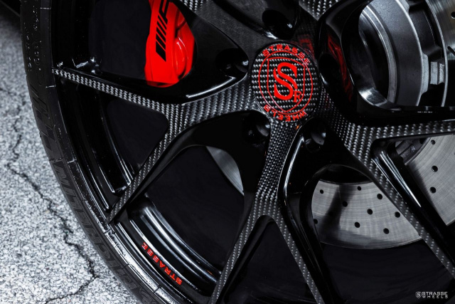 Für diesen mit reichlich Kohlenstoffparts aus dem Hause BRABUS versehenen Mercedes-AMG C63 S hat US-Räderproduzent Strasse Wheels ein sehr passendes Rad-Finish auf Lager. Die Felgen, die auf die Modellbezeichnung „SM5R Deep Concave Monoblock“ hören, glänzen mit einem sehenswerten Carbon-Finish. An diesem Sportwagen sind sie in der Dimension 8,5 x 19 an der Vorder- und 10 x 19 an der Hinterachse montiert. Das Zusammenspiel aller Komponenten ist ein rassiger Look. Dressed to thrill eben. (Bilder: Strasse Wheels)