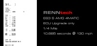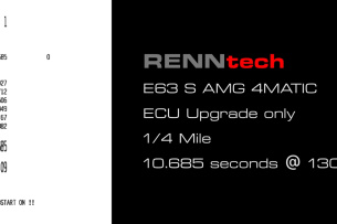 Der derart forcierte straßenzugelassenen E63 AMG durcheilte die Ziellinie nach dem Viertelmeilesprint in 10,685 Sekunden mit 209 km/h. Für den Spurt aus den Stand auf 60 mph (96,6 km/h) benötigte der RENNtech-E63-S lediglich 2,79 Sekunden. Diese Supercar ähnlichen Fahrleistungenvollbrachte der Benz ohne Änderungen an Auspuffanlage oder Motor (mit Ausnahme des Steuergeräts wohlgemerkt). (Bilder: Renntech)