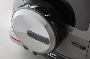 Neue SCHAWE Schutzgitter für die Kühlerverkleidung und die Frontschürze geben der G-Klasse eine neue Aufmerksamkeit. Viele Kunststoff- und Anbauteile wie die Kennzeichenhalterung, der Mercedes-Stern, die Radnabendeckel, der Kühlergrill und die Frontschürzengitter wurden schwarz lackiert.