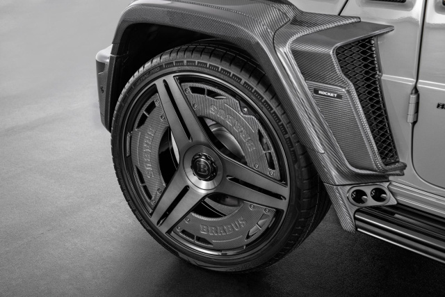 Für die BRABUS 900 ROCKET EDITION wurden speziell 24 Zoll große Highend-Leichtmetallräder im BRABUS Monoblock II Dreispeichendesign mit Sicht-Carbon-Aeroblades entwickelt. Die Bereifung besteht aus Hochleistungsstraßenreifen mit einer Dimension von bis zu 355/25 ZR 24 an der Hinterachse.