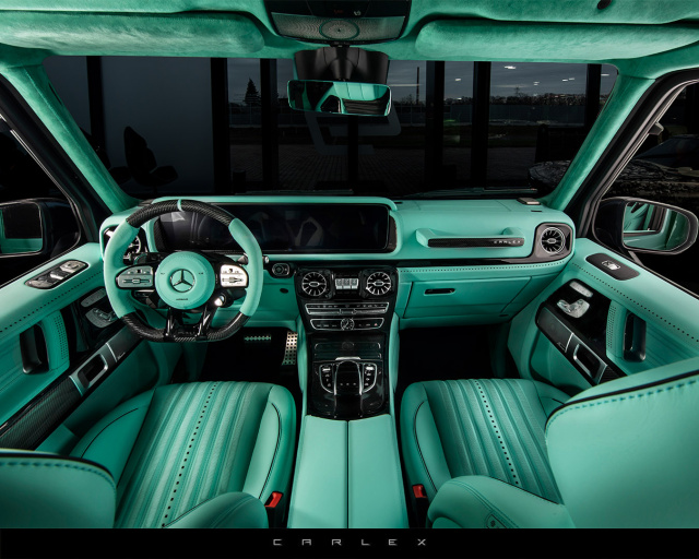 Alles außer gewöhnlich - das ist die Philosophie des polnischen Veredlers von Luxusautomobilen namens Carlex Design. Von der Stange gibt's hier eher nix. Das meiste wird ganz nach Kundenwunsch bei Carlex sehr persönlich erledigt. Vor allem die geradezu meisterhaften Interieurs made by Carlex können sich wie individuell aufgemachte Innen(t)räume sehen und bestaunen lassen. Ganz frisch bei Carlex fertig geworden ist dieser Mercedes-AMG G63. Das Mint der Karosserie findet sich als Farbe für das wirklich wunderbare Interieur wieder.