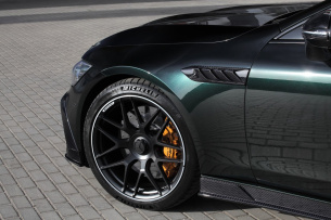 Die Designteile, mit denen Topcar den viertürigen AMG GT rundherum ausstattet, strahlen eine Extraportion Überholimage aus und stellen eine markante Dynamik zur Schau. Der komplette Bausatz besteht aus mehr als 30 Komponenten, wobei der Kunde die Wahl hat zwischen Teilen aus 2x2-Twill-Carbonfaser oder 4x4-Twill-Carbonfaser. Darübe rhainsu bietet der Veredler auch 21-Zoll-Schmiederäder in verschiedenen Designs an. Bilder: Topcar
