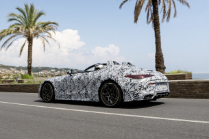 Ein neuer Sportwagen mit Stern ist im Werden: Mercedes‑AMG startet die abschließende Phase der Entwicklung des hochexklusiven Sportwagens PureSpeed, der offensichtlich von der Bussink Speedlegend inspiriert zu sein scheint und in einer auf 250 Exemplare limitierte Kleinserie als erstes Modell der Mythos Series gefertigt werden wird. Die Testfahrzeuge präsentieren sich stark getarnt. Es ist allerdings davon auszugehen, dass der im Mai 2024 in Monaco gezeigte "Concept Mercedes-AMG PureSpeed“ im Wesentlichen den Serienlook des Zweisitzers vorwegnimmt.
