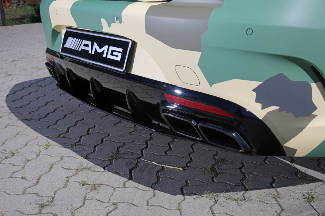 Auch achtern wurde die Modellpflege „nachgeholt“: Sowohl der Diffusor inklusive eckiger Endrohrblenden, als auch die OLED-Rückleuchten entsprechen den späteren Baujahren. Eine Brabus-Carbon-Spoilerlippe auf dem Heckdeckel rundet die Karosseriemodifikationen ab.