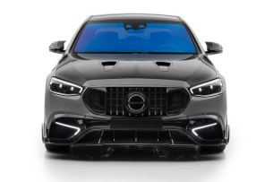 Der Tuner präsentiert das Angebot eines Komplettumbau des S63, welcher sich an den auf absolute Höchstleistung orientierten Kunden wendet. Nach dem ersten Blick auf das markante-aggressive Body-Kit, bei dem die Motorhaube mit Lüftungseinlässen komplett aus Carbon und übrigens auch alle anderen Karosserie-Anbauteile aus dem schönen Kohlenstoffmaterial gefertigt sind, ist klar: Dieser Wagen ist keiner von der milden Sorte.