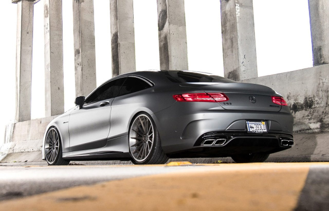 Das in Mattsilber gehüllte Mercedes-AMG S63 Coupé C217 Pre-Facelift-Modell mit Applikationen in Hochglanzschwarz steht in jeder Hinsicht stark da. Unter der Haube ist noch der 5,5-Liter-V8-Motor mit 585 PS installiert. Doch formvollendet sportlich tritt das Coupé mit AMG-DNA mit seinem Schuhwerk auf