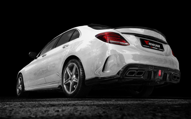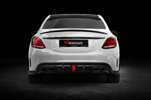 Für die aktuelle C-Klasse-Limousine mit AMG-Line-Ausstattung ist das Design Zubehör von Renegade gedacht. Vor allem die Frontansicht mit Spoilerlippe, AMG-GT-R-Grilleinsatz und Motorhaubenaufsatz macht ordentlich was her. Um die dynamischen Seite der C-Klasse-Karosserie zu betonen, hat Renegade ferner einen Kofferraumspoiler, Dachspoiler sowie einen Heckdiffusor mit zentraler LED-Nebelschlussleuchte und 2x2 integrierten Auspuffblenden im Angebot. (Bilder: Renegade)