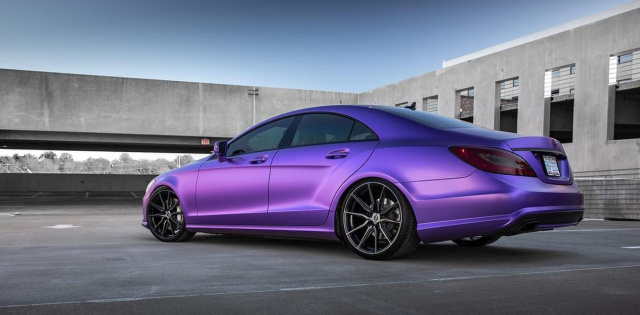 Wer bei seinem Mercedes-Benz über einen individuellen Look nachdenkt, stellt automatisch die Frage nach dem dafür geeigneten Zubehör. Zweifellos hat der Zubehör-Markt in Sachen Styling, Design und Optik-Tuning viel zu bieten. Man kann es sich aber auch einfach machen, und seinen Mercedes mit einer sehenswerten Folierung (bei diesem CLS mit Satin Purple Metallic von Avery Dennison Graphics Solutions) und einer neuen Fahrwerksabstimmung nebst eleganten Rädern besser dastehen lassen.