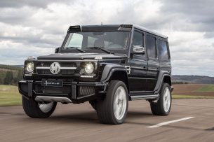 Dazu gibt es auf Wunsch ein Active-Sound-System für den 350er Diesel, das diesen im V8-Sound bollern lässt. Mit Funkfernbedienung kann der Sound verändert, aber auch abgeschaltet werden. Auf Wunsch wird ein spezielles Fahrwerk eingebaut, das die Karosse des ‚G-Cross‘ um 70 mm anhebt. REVERSO-Felgen in der Größe 10J x22“ mit grobstolligen Reifen 305/45 x 22 vermitteln raue Off-Road-Optik. Für den G 350 Diesel bietet Hofele-Design einen Plug-and Play-Kit zur Leistungssteigerung an: Basisleistung 245 PS steigt auf 290 PS und das Drehmoment steigt von 600 Nm auf 700 Nm. (Bilder Hofele Design)