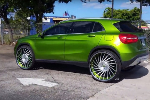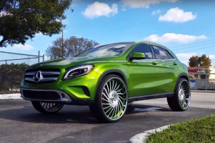 Wie groß kann kompakt sein? Diese Frage drängt sich auf, wenn der Mercedes-Benz GLA auf 26-Zoll-Felgen anrollt und somit als green Giant daherkommt. US-Felgenhersteller Forgiato steuerte die rieisgen Räder bei. Grün und kühn schaut das Resultat aus - und mutet dabei irgendwie grüner an, als dass es sich dem Anschein nach um das im Werksfarbkasten verfügbare elbaitgrün metallic handeln könnte. Aber vielleicht täuscht ja auch der schöne Schein oder das Sonnenlicht Kaliforniens, wo diese Bilder entstanden. Das Zeug zum muskelprotzigen Hulk bringt der grüne GLA-Riese übrigens nicht mit. Unter der Haube soll dieser Umbau, der bei der US-Werkstatt „Ace Whips“ vorgenommen wurde, nicht mehr Leistung zu bieten haben. (Bilder: YouTube)