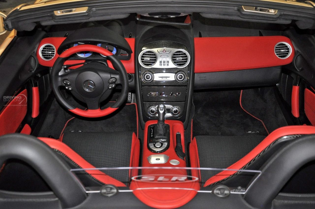 Dass der damalige Käufer, ein kanadischer Kunde, statt Silberpfeil-Outfit die Elfenbein-Farbe für seinen 626 PS starken Roadster wählte, mag ungewöhnlich sein, ist aber durchaus eine sinnvolle Wahl gewesen. Denn der 1955er Mercedes 300 SL Gullwing, an den die SLR-Konstruktion von ihren Machern angelehnt wurde, war seinerzeit ab Werk auch mit einer Elfenbein-Kolorierung verfügbar. Der Elfenbein-Lack am Mercedes-Benz SLR-McLaren sieht in Verbindung mit dem roten Stoffdach und dem roten Sulver-Arrow-Lederinterieur jedenfalls sehr ansehnlich aus, oder etwa nicht?