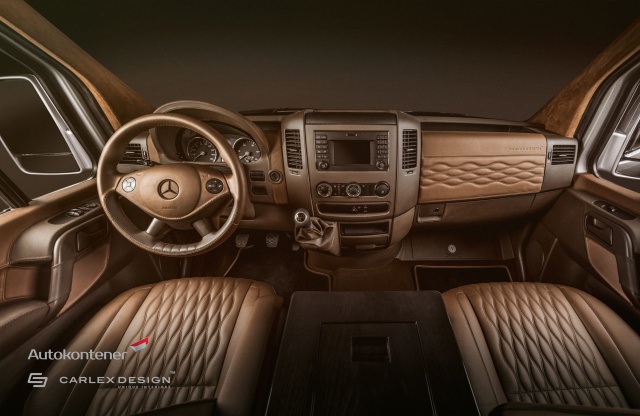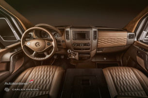 Auf die Räder gestellt wurde der Sprinter VIP von der polnischen Firma Autokontener, ein Unternehmen, das sich seit seit seiner Gründung im Jahr 1992 auf die Fertigung von großen, luxuriösen Fahrzeugen, die auf Kundenwunsch angefertigt werden, spezialisiert hat. Wer großen Wert auf Ästhetik und eine Innenausstattung legt, die ihresgleichen nicht an jeder Ecke findet, ist bei Autokontener sicherlich nicht an der falschen Adresse - zumal der Umbauer sich bei besonders noblen und exquisiten Innenraumwelten der Mitarbeit des für seine hohe Handwerkskunst international hoch gerühmten Veredlers Carlex Design versichert. Auch Carlex hat seinen Sitz in Polen.