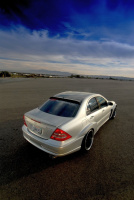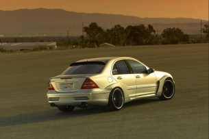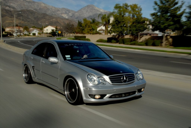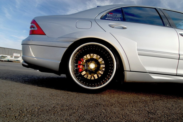 Wenn ich schon in den Motor investiere, dann wollte ich aber auch, dass mein Auto optisch wahrgenommen wird!, bemerkte Jerry, der sich dann an DTM Autobody in El Monte wandte. Dort riet man ihm zu einem originalen AMG-CLK DTM-Body-Kit. Allerdings musste dieses natürlich komplett angepasst werden, denn schließlich- wer sieht es nicht? - war Jerrys Benz kein Coupe.