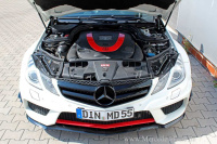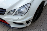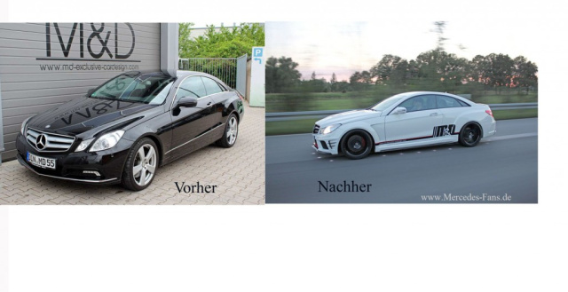 Mercedes - wie hast du dich verändert! Als sich Mannschaft von M&D Exclusive Cardesign an die Arbeit machte, da war das 2009er Mercedes E500 Coupé noch serienah und in Obsidian-Schwarz-Metallic. Doch dann nahm der Komplettumbau seinen lauf und die Transformation zum heißen und weißen Hingucker mit lackiertem PD850 Black Edition-Widebody-Karosseriebausatz nahm individuelle Formen an.