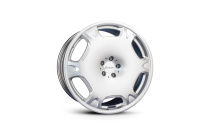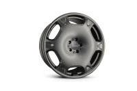 Optische Akzente lassen sich mit dem Leichtmetallrad LM2R gleich in zwei Farben setzen. Merkmale der nicht nur in Schwarz, sondern auch in „Hypersilber“ verfügbaren Lorinser-Felge sind das flächige Design und die organischen Formen. So wirkt die Mittelfläche, als wäre sie an den angedeuteten Doppelspeichen wie ein Zeltdach aufgehängt. Weitere Highlights sind das zurückversetzte Felgenhorn und die geteilt wirkenden Speichenenden.