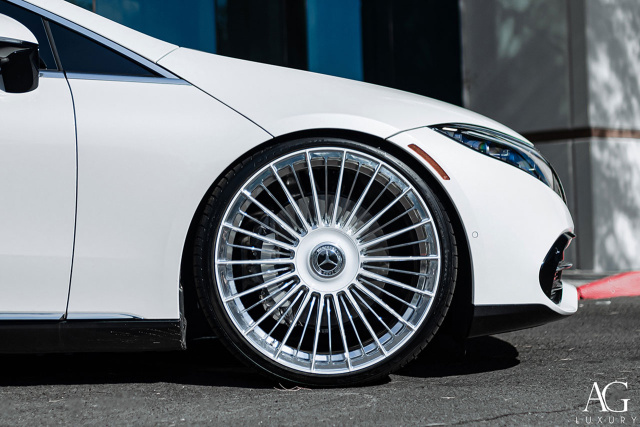 In Deutschland übersteigt für den Mercedes-EQS450+ die „amtlich“ zulässige Radgröße nicht die 22-Zoll-Dimension. In den USA hingegen kann man mit der elektrischen S-Klasse um einiges großartiger in Fahrt kommen - zum Beispiel mit den AGL63-Monoblock-Felgen von AG Luxury.