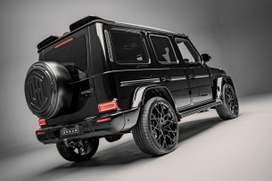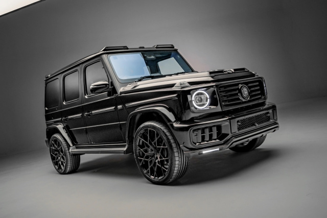 Das Aero-Kit von Urban Automotive betont die charakteristische kantige Silhouette des G-Wagon mit einer Extra-Dosis Sport-Style. Besonders ins Auge fallen die neue, aggressive Motorhaube mit geschlossenen Lüftungsschlitzen in Sichtcarbon, eine markante Lichtleiste und ein sportlicher Spoiler. Radkappen und weitere Details runden den optischen Auftritt ab und verleihen dem Geländewagen eine unverwechselbare Präsenz.