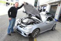 Peter Röskes erschien mit seiner Lebensgefährtin Susanne in einem SLK AMG 55, modifiziert mit einem Carlsson-Kompressor Kit samt Fächerkrümmer und straffen 510 PS bei 680 Nm, auf dem italienischen Hochgeschwindigkeitskurs Nardo schaffte der Wagen mühelos 310 km/h. Mercedes-Fans.de hat diesen Wagen bereits als Auto der Woche hier vorgestellt! Dabei einmalig und weltweit nur einmal hergestellt, ein versenkbares Carbon Dach.