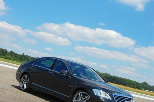 Brachiale Urkräfte, die auch mit den 2.2 Tonnen Leergewicht leichtes Spiel haben. Der Sprint auf die Tempo-100-Marke ist nach 4.4 s erledigt. Vmax liegt beim S 63 AMG bei 250 km/h elektronisch begrenzt. Bei unserem Exemplar mit Performance-Paket ist diese Grenze auf 300 km/h angehoben. Spannender als stumpfes Dahinrasen ist jedoch das Abrufen der Kraft für Überholmanöver oder beim Herausbeschleunigen aus Kurven. Hier legt die noble Limousine Fahrleistungen an den Tag, die auf hohem Sportwagenniveau liegen!