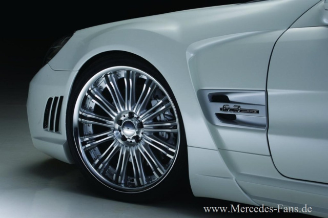 An diesem Mercedes SL gibt es viel zu sehen und zu entdecken. Kunststück, schließlich ist das Designzubehör ja auch sehr umfangreich ausgefallen. Zugegeben, nicht jeder mag die Plastikzusätze in solcher Fülle. Indes ist das Stylingzubehör von Wald International alles andere als geschmacklos geformt worden. Nein, die Breitbau-Optik von Front, Seitenschwellerleisten, Heckschürze mit Diffusor und Radhausverbreiterungen hat durchaus einen Reiz.