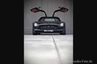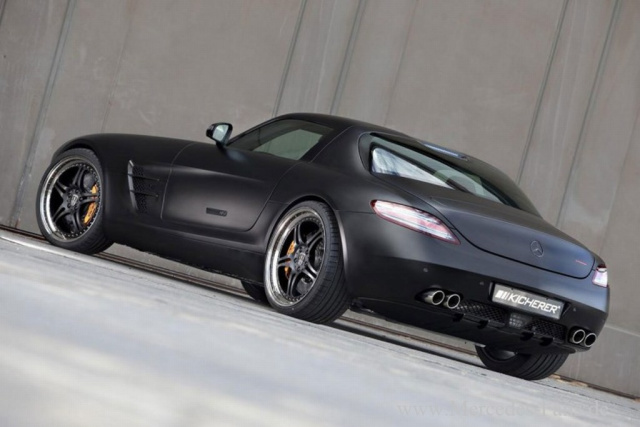Der von Mercedes Tuner Kicherer umgebaute SLS ist so richtig etwas für Schwarzseher. Painted in Black? Nein, schwarz angestrichen wurde der Mercedes nicht. Man hüllte ihn in eine mattschwarze Folie.