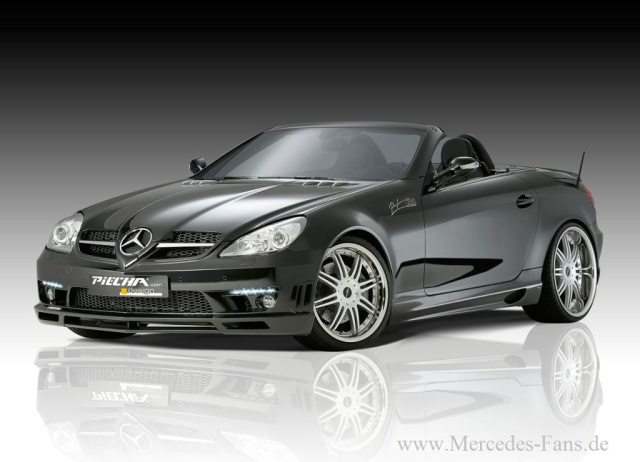 Sportlich elegant präsentiert sich das Aerodynamik-Programm von Piecha Design. Dem Beispiel von international erfolgreichen Mercedes Tunern wie Brabus und Lorinser folgend, war man bemüht, bei der Entwicklung der Zubehörteile die Mercedes-Benz Designsprache im Auge zu behalten. Für die Front des Mercedes Roadsters hat Piecha eine komplette Stoßstange inklusive LED-Tagfahrlichtern, breitem, mittigem Spoilerschwert und zusätzlichen Bremsluftkanälen, integrierten Nebelleuchten sowie seitlichen Doppelkiemen im Programm.