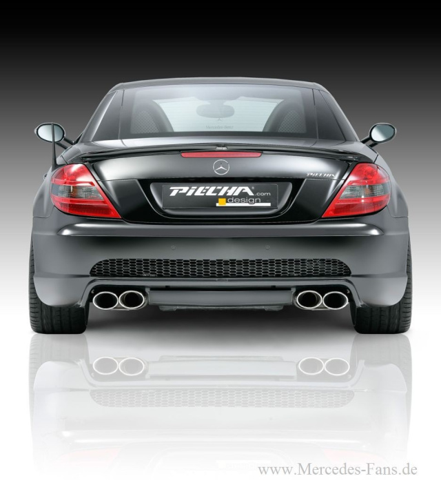 Für den Heckbereich entwickelte Mercedes Tuner Piecha eine völlig neu gestylte Heckschürze mit breitem Gittereinsatz, Diffusor und zusätzlichem Unterfloorflügel. Wahlweise gibt es die Heckschürze mit Aussparungen für die Serienauspuffanlage wie auch für 4-Rohr Auspuffanlagen. Für zusätzlichen Abtrieb soll eine dezente, bis an die Außenkanten verlaufende Heckspoilerlippe sorgen, die sich formschlüssig in den Heckdeckel integriert.
