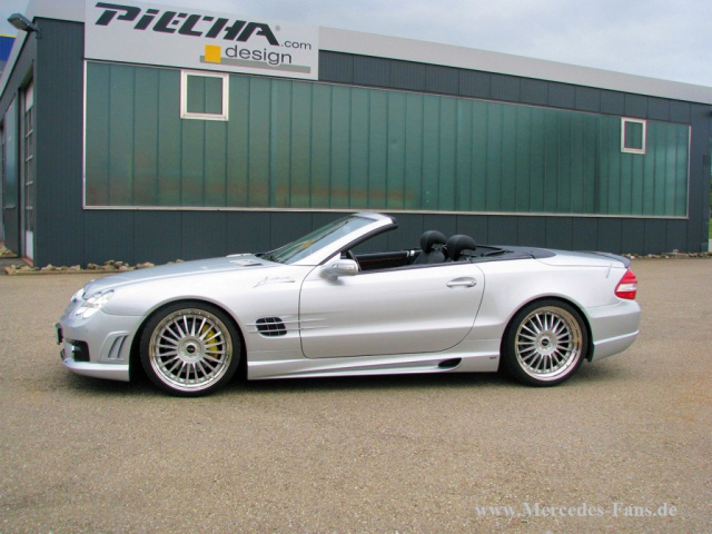 Piecha Design aus dem baden-württembergischen Rottweil präsentiert mit dem Avalange RS-Umbau eine gelungene Kombination aus dem klassischen Vier-Augen-Gesicht des R230 mit der frischen Designlinie des 2008er Facelift-Modells. Die Front wird von einem gegenüber dem Serienmodell deutlich flacheren Ein-Lamellen-Grill dominiert und wirkt durch den größeren Mercedes-Stern dynamischer. Zusätzlich zu den Nebelscheinwerfern mit Chromringen sind LED-Tagfahrleuchten in die neue Frontschürze integriert. Den Frontspoiler wie auch die Heckschürze gibt es wahlweise auch in Parktronic-Ausführung.