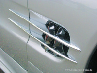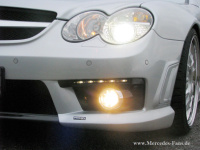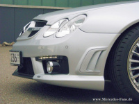 Alle Aerodynamikteile werden komplett mit Innenhalterungen für die Montage an Original-Befestigungspunkten ausgeliefert. Die dreiteilige Frontspoilerlippe für das Facelift 2008 Modell mit Serienfrontspoiler beschert zusammen mit den LED-Tagfahrlichteinsätzen und den Scheinwerferblenden dem Facelift-SL einen kraftvollen, dynamischen Auftritt. Scheinwerferabdeckungen lassen die Blinker wie schmale LED-Balken wirken.