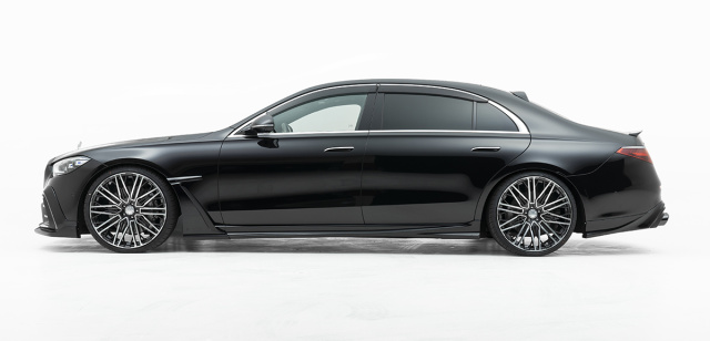Zur Abrundung der Individualisierung der neuen Mercedes S-Klasse bietet der japanische Tuner unter anderem 22-zöllige Monoblock-Schmiedefelgen mit sehr interessantem Design an. Last but not least hat Wald auch noch ein elektronisches Tieferlegungskit für die Baureihe 223 auf Lager.