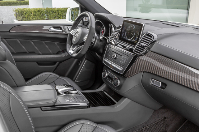 Zwei tubenförmige Rundinstrumente mit Einfassung in Silberchrom und das zentrale, 11,4 cm (4,4 Zoll) Multifunktionsdisplay informieren den Fahrer umfassend. Zum AMG-typischen Umfang zählen Ziffernblätter in Carbon-Optik mit 320-km/h-Tachoskala, AMG Schriftzug und roten Zeigern sowie das Hauptmenü inklusive RACETIMER, manueller Ganganzeige und AMG Start-up-Bildschirm. Das Topmodell Mercedes-AMG GLE 63 S bietet zusätzlich mit der Polsterung Leder Exklusiv Nappa AMG ein optisches und haptisches Highlight.