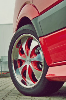 Ohne sportliches Schuhwerk sollte sich ein Top-Sprinter natürlich nicht auf die Piste wagen. Darum stattete Hartmann Tuning den Mercedes Transporter mit ebenso großartigen wie sehenswerten Zaro-Felgen in 9 x 20 und attraktiver Bicolor-Optik aus. Die Felgen geben übrigens mit sportiven Pirelli P-Zeo Nero in 265/45 R20 Gummi.