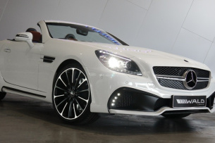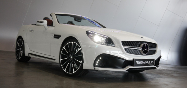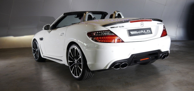 Das Performance-Package von Wald International für den Mercedes SLK (R172) umfasst wuchtige Spoiler-Stoßstangen, Heck-Diffusor, markante Seitenschwellerleisten sowie diverse LM-Räder und eine Vierrohr-Sportabgasanlage mit dem Wald typischen Endrohr-Design.