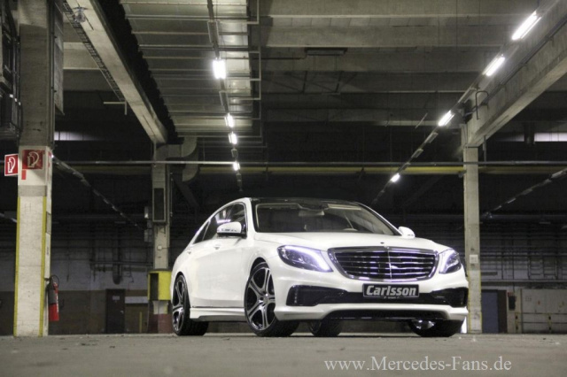 Carlsson hat ein Zubehörprogramm für die neue Mercedes-Benz S-Klasse (W222) entwickelt. Die Bandbreite der Modifikationen reicht dabei von Aerodynamikkomponenten in Form von kompletten Stoßfängern über Leichtmetallräder und Leistungssteigerungsoptionen bis hin zur Veredlung des Innenraums. Kräftig und dynamisch steht die neue Carlsson S-Klasse da. Markante, beidseitig als Designelemente angebrachte Lufteinlässe kennzeichnen die Frontschürze. Diese betont den dreidimensional gestalteten Kühlergrill und trägt mittig die Carlsson-typische RS-Lippe. Seitenschweller welche die Linienführung der Carlsson Front und Heckschürze fortführen, unterstreichen das sportlich-elegante Erscheinungsbild.