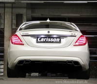 Am Heck der neuen S-Klasse von Mercedes-Benz wartet der Tuner mit Heckspoiler, Heckschürze sowie einem speziell für die neue S-Klasse entwickelten Carlsson Sportauspuff mit Endrohren in Trapezform auf.