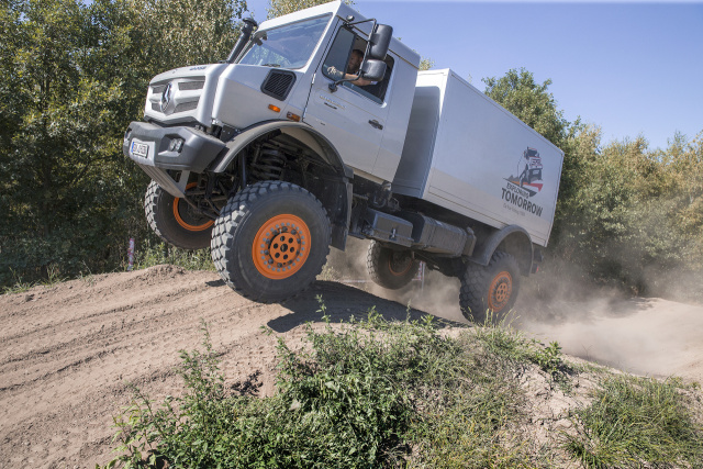 Oder für Camping on Board, Outdoor Kitchen mit Grill und Frischwassertank. Als Expeditionsfahrzeug erhält der U 5030 einen Wohnkofferaufbau der Extraklasse, der keine Wünsche offen lässt, und trotzdem kompakt, wendig und hochgeländegängig ist. Für Motosport-Fans kann der Unimog als Rally Raid Fahrzeug nach FIA T4 Homologation aufgebaut und rennfertig als Rallyfahrzeug oder Rallybegleitfahrzeug angeboten werden. Dies beinhaltet weitere Modifikationen an Fahrwerk und Motor, u.a. hydraulische Achsendanschläge, Sicherheitszelle, Schalensitze, Feuerlöschanlage und ein Leichtbau-Kofferaufbau.