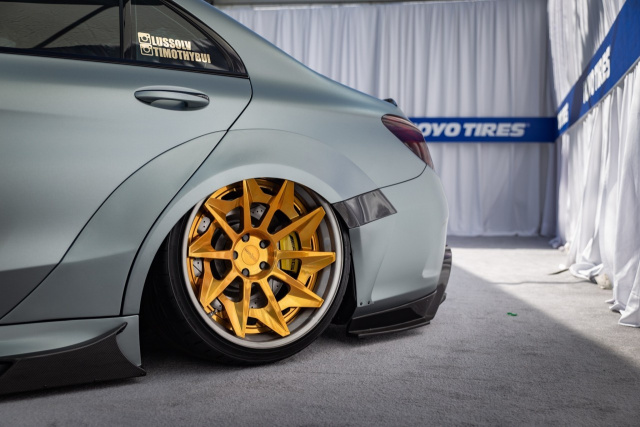 Alles Details zum Auto kennen wir leider nicht. Nur so viel: Das Breitbaukit mit durchsichtiger Haube steuerte Darwin pro bei. Ein Accuair-Luftfahrwerk macht den Benz fast dem Erdboden gleich und versenkt die goldenen CVT-Räder von Rotiform sehr sehenswert in die geweiteten Radkästen. Ist schon ein heftiges Ding. Wer‘s extrem liebt, wird dieses C63-Umbau sicherlich mögen. (Bilder: Alexander Karstens (5), Darwin Pro (3), Accuair (1))