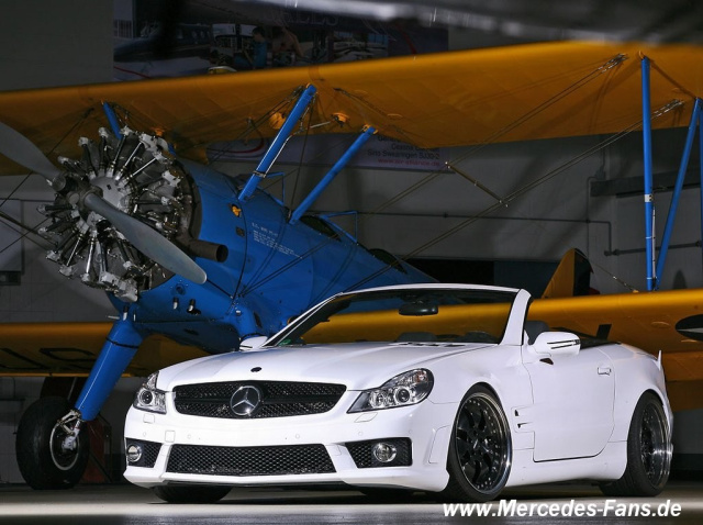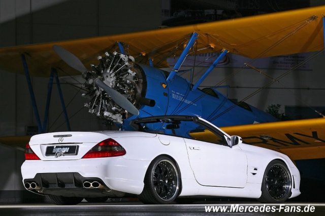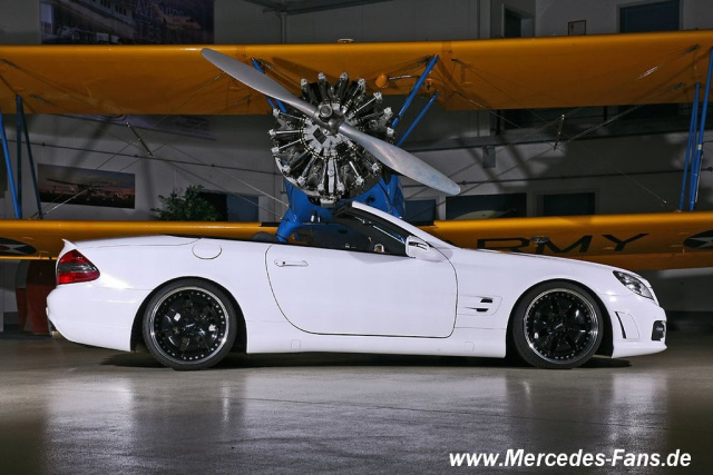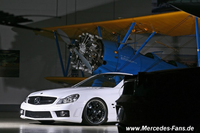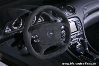 Die komplette Front- Heck- und Seitenpartie glänzt jetzt inkl. Scheinwerfer, Motorhaube und Frontschürze sowie Heckschürze wie das neue 2008er SL-Modell. Am Fahrzeugheck wurden Teile wie Carbon-Heckdiffusor und die Sportabgasanlage auf die neue Originaloptik des SL65 AMG angepasst. So ist der Komplettumbau jetzt auch kaum von einem 2008er Modell zu unterscheiden. Dies ist jedoch nicht alles was hier verändert wurde.