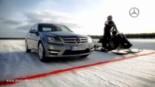 Showdown auf dem Eis: Am Nordpalarkreis, wo Mercedes-Benz regelmäßig seine winterlichen Fahrertrainings bei minus 39 Grad auf Eis und Schnee veranstaltet, sollten Snowmobile eigentliche einen Heimvorteil haben, oder? Sieben Monate im Jahr sind hier oben im Norden Schwedens die Straßen reine Eispisten. Und unter diesen eisigen Bedingungen fordert eine Mercedes C-Klasse ein wendiges Snowmobil zum Zweikampf heraus. Wer wird diese Wettfahrt gewinnnen? Wer wird zum Star on Ice? Im Video werden Sie's erfahren.