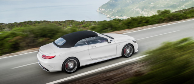Das S-Klasse-Cabriolet präsentiert Mercedes-Benz auf der IAA als doppeltes Flottchen. Mit dem S 63 4MATIC Cabriolet stellt Mercedes-AMG erstmals in der 48jährigen Unternehmensgeschichte ein viersitziges Cabriolet im S-Klasse Segment auf die Räder (19-Zoll Serie, 20-Zöller optional). Als Antriebsquelle dient dem Mercedes-AMG S63 Cabriolet ein 5,5-Liter-V8-Biturbomotor mit 585 PS und 900 Nm max. Drehmoment. Den Sprint von 0-100 km/h absolviert das S 63 Cabriolet in 3,9 Sekunden. Der Topspeed ist auf 250 km/h (elektronisch begrenzt). Der Kraftstoffverbrauch wird mit 10,4 Liter je 100 Kilometer nach NEFZ angegeben. Das S 63 Cabriolet ist in zwei Varianten erhältlich: mit Hinterradantrieb (nur als Rechtslenker) oder mit dem Performance-orientierten AMG Allradantrieb 4MATIC (als Linkslenker). Die Kombination S-Klasse Cabriolet und 4MATIC bleibt der AMG Variante vorbehalten. Geschaltet wird mit SPEEDSHIFT MCT 7-Gang Sportgetriebe. Das S 63 Cabriolet ist ab Dezember 2015 bestellbar. Die Markteinführung findet im Laufe des Frühjahrs 2016 statt.