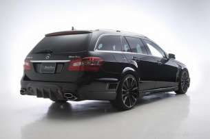 Zum Widebody-Kit des Tuner gehören mächtige Stoßstangen, ein Heck-Diffusor, markante Seitenschwellerleisten, sowie Radhausverbreiterungen mit Lufteinlässen. Darüber hinaus hat Wald International für das T-Modell der Mercedes-E-Klasse noch Sportabgasanlagen mit eigentümlicher Endrohroptik, Sportfahrwerke und ein großes Angebot an Leichtmetallfelgen auf Lager.