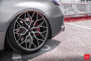 Für den absoluten Tiefpunkt ist ein Luftfahrwerk mit Accuair-Modul zuständig. Ist der Benz unten angekommen wirken die spektakulär gestylten Vossen-HF2-Räder noch sehenswerter. (Bilder: Vossen)